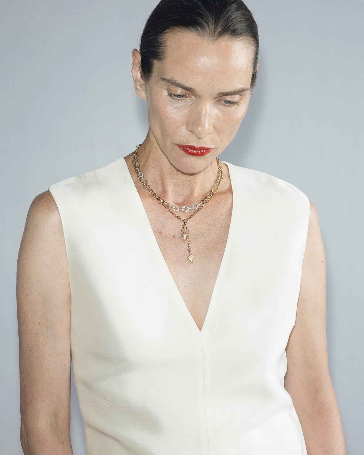 With the brand’s codes firmly in focus, founder Baylee Zwart leaned into deeper experimentation this season, emerging with a collection that embodies clarity, glamour, and a sense of assured evolution. Romanticism gives way to bold adornment — roundness, fluidity, and gemstone color are pushed to new extremes. Signature silhouettes are magnified, surfaces glow with allover diamonds, and Baylee’s passion for rare, exquisite stones takes center stage. The collection culminates in the Edition 1 Rare-Cut Diamond Necklace: a wearable sculpture composed of unusual vintage-cut diamonds, each one individually celebrated in its shape, setting, and sparkle.