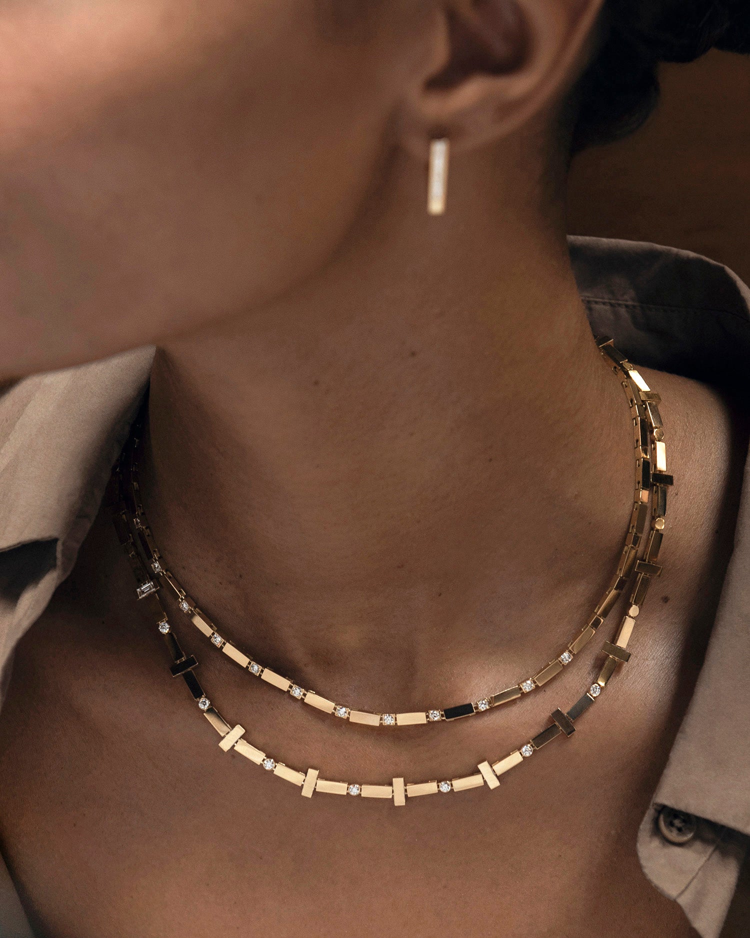 Scattered Gold Bar and Full Diamond Tennis Necklace