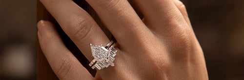 テーパード バゲット付きプロング シールド ダイヤモンド リング