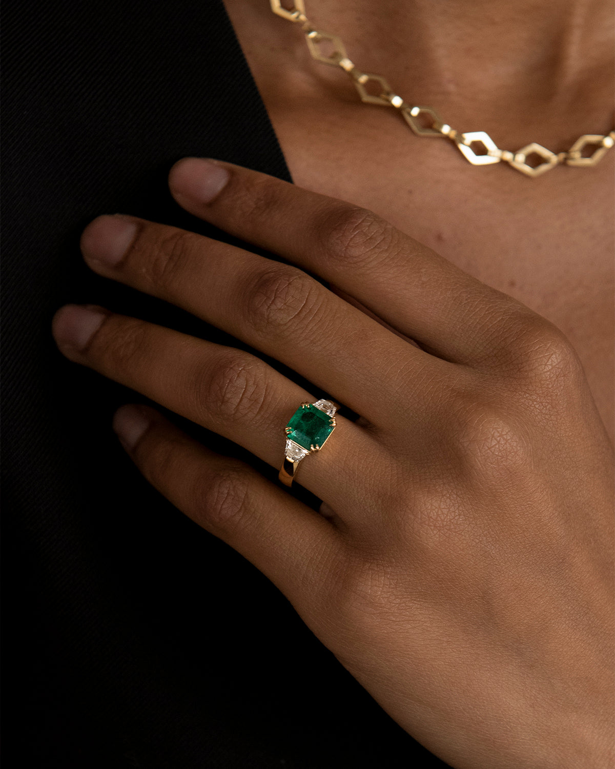 ĀZLEE x Gemfields Contour Emerald Pave Diamond Ring