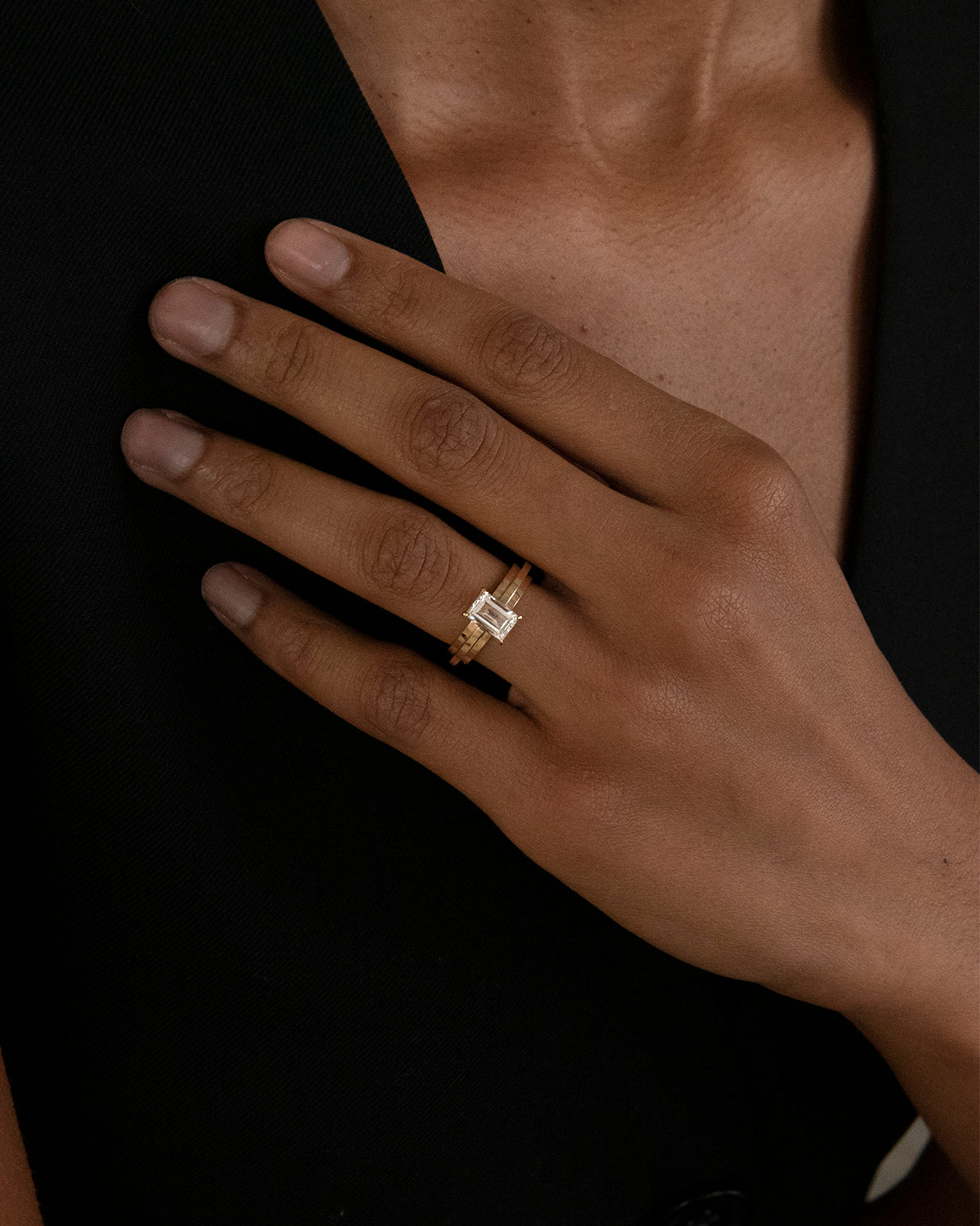 縦型エメラルドカットダイヤモンド付き5段階段リング