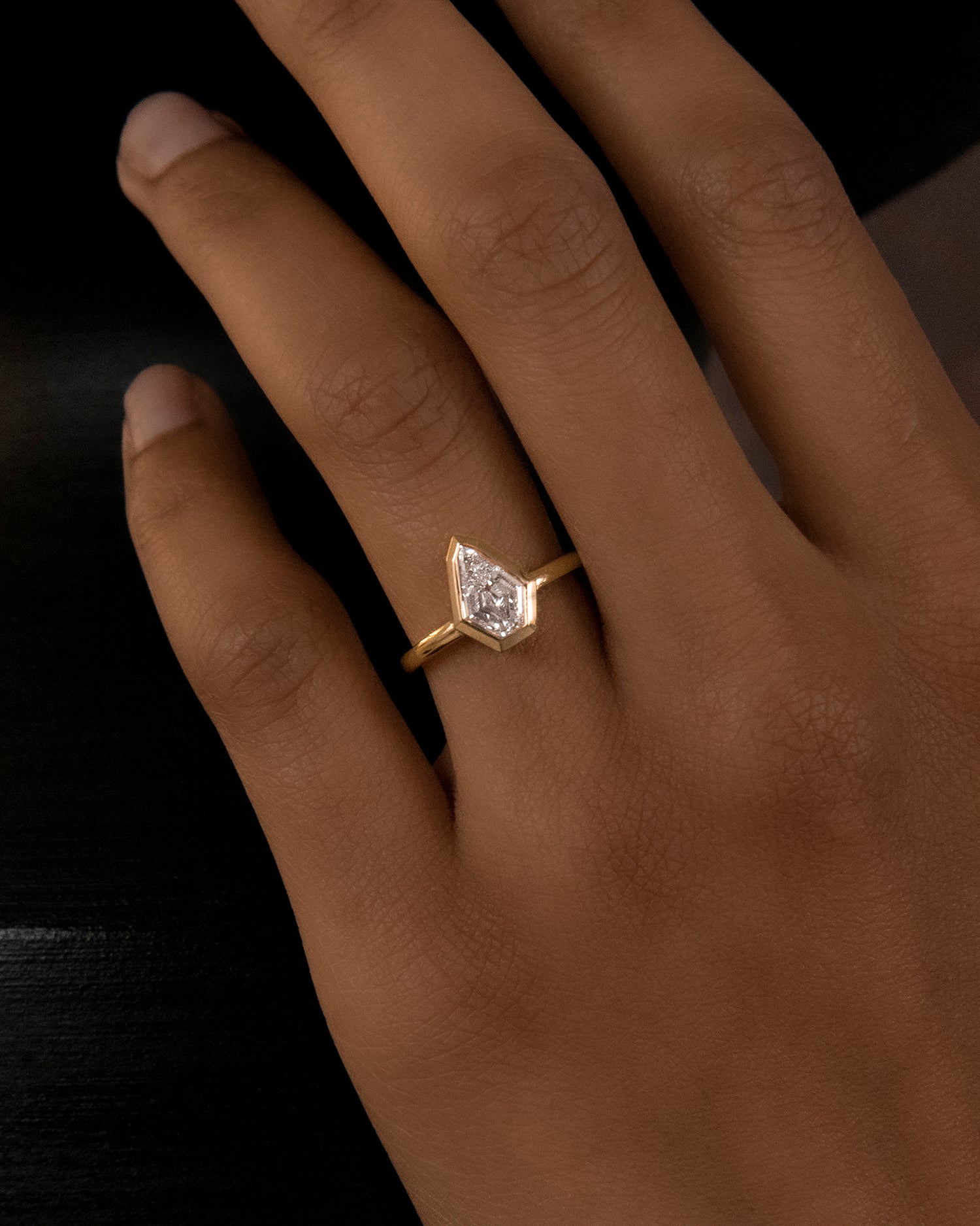 修正されたシールド ソリティア ダイヤモンド プロング リング