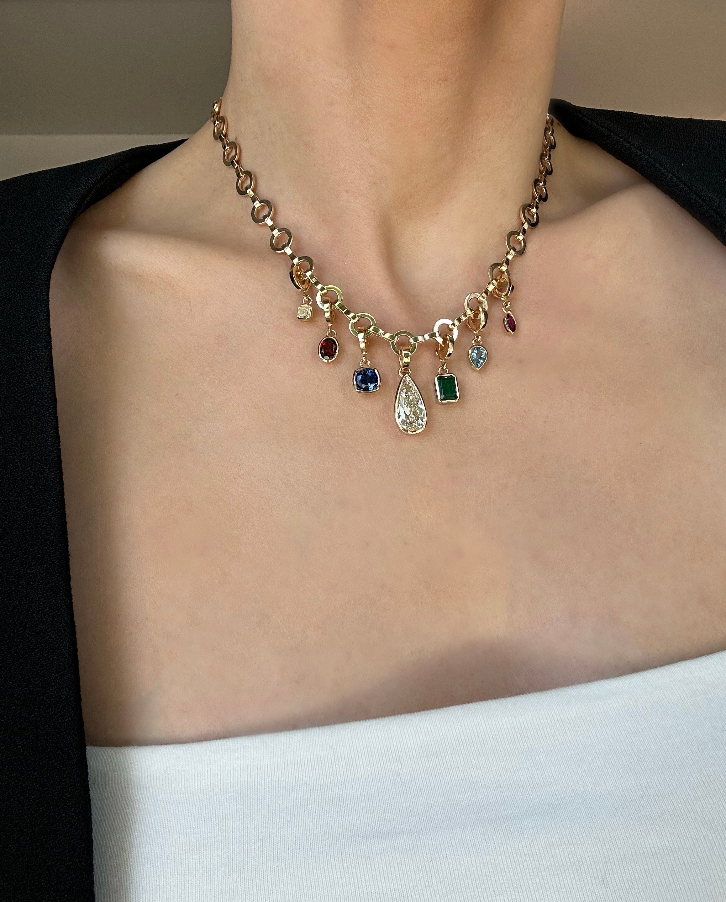 Custom Lozenge Large Motif Chain Necklace with Asscher Diamond Bezel Pendant