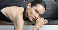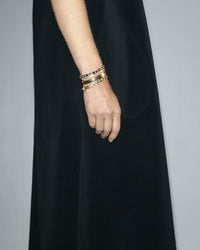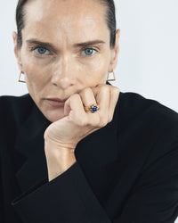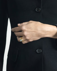 Earcuffs, bracelets, and rings are adorned with emeralds and sapphires in a chromatic crescendo — a celebration of color and movement, set in the signature Staircase pro- file. This sculptural foundation speaks to the architectural clarity that defines AZLEE’s design language, now explored through a more expressive lens. A new tactile texture, inspired by nature’s quiet transformation of raw materials over time — stone shaped by water, metal weathered by air — adds depth and softness to the collection’s surfaces. Three newly developed coins anchor the collection with universal symbols of evolution and transformation, extending the theme of renewal into talismanic form.