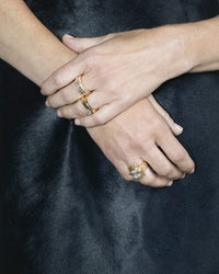 With the brand’s codes firmly in focus, founder Baylee Zwart leaned into deeper experimentation this season, emerging with a collection that embodies clarity, glamour, and a sense of assured evolution. Romanticism gives way to bold adornment — roundness, fluidity, and gemstone color are pushed to new extremes. Signature silhouettes are magnified, surfaces glow with allover diamonds, and Baylee’s passion for rare, exquisite stones takes center stage. The collection culminates in the Edition 1 Rare-Cut Diamond Necklace: a wearable sculpture composed of unusual vintage-cut diamonds, each one individually celebrated in its shape, setting, and sparkle.