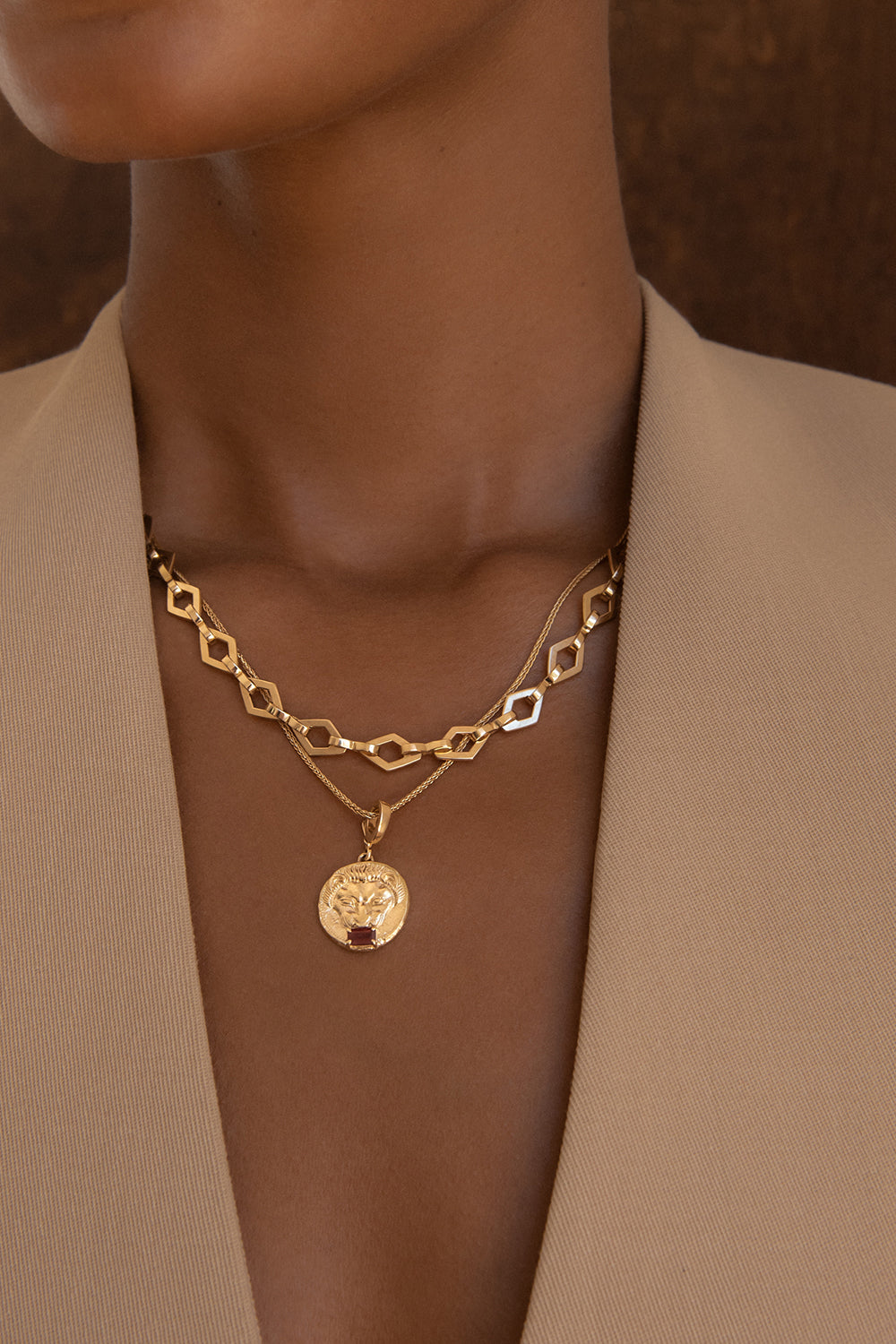 The Tessellate chain, a winding geometric pattern commonly found in ancient Greek architecture, sculpture and decorative arts, symbolizes infinity. This repeating pattern is seen throughout the Collection.