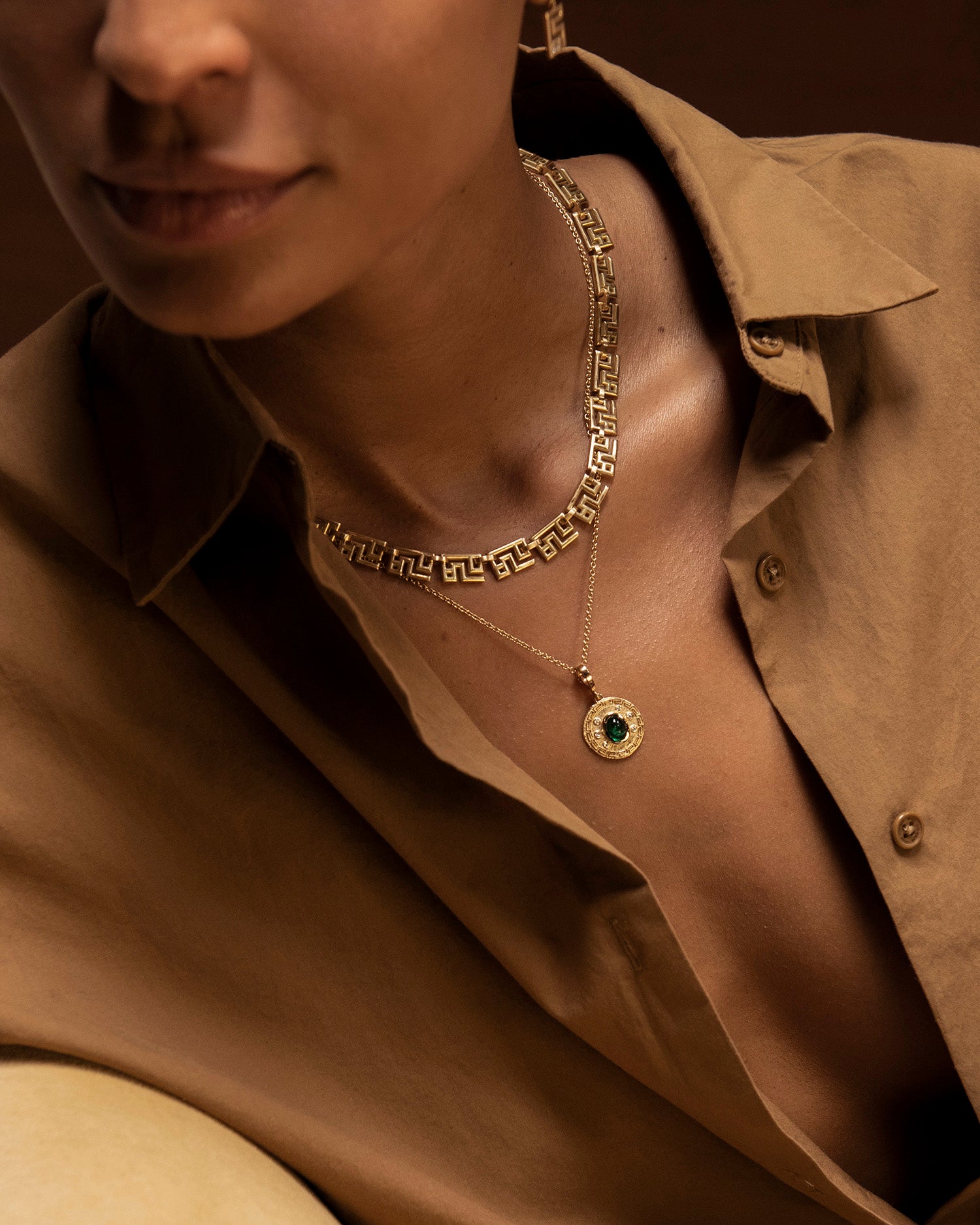 ギリシャ模様とエメラルドの小さなチャーム