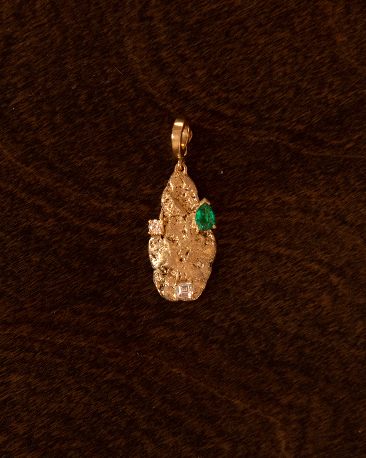 エメラルド散りばめられた大きなゴールドナゲットチャーム