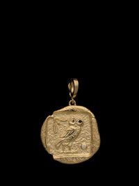 知恵の女神ゼウスの娘アテナの古代の象徴であるフクロウが刻まれています。