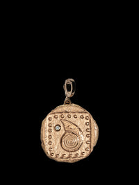 Depicting a nautilus shell, surrounded by delicate gold pearls.