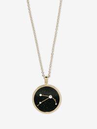 チャームはアベンチュリン ガラスで手作りされています。アベンチュリン ガラスは、18K イエロー ゴールドとクリスタルのインクルージョンを備えた半透明のガラスで、星空を象徴しており、きらめく背景に各星座がダイヤモンドで輪郭を描かれています。裏側には各星座の名前が上品に刻印されています。
