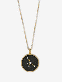 チャームはアベンチュリン ガラスで手作りされています。アベンチュリン ガラスは、18K イエロー ゴールドとクリスタルのインクルージョンを備えた半透明のガラスで、星空を象徴しており、きらめく背景に各星座がダイヤモンドで輪郭を描かれています。裏側には各星座の名前が上品に刻印されています。