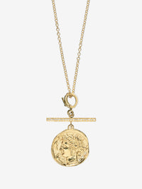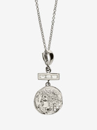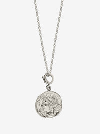 このコインにはチャームクラスプが付いています。クラスプが開閉し、どのチェーンでも取り外したり取り付けたりできることを意味します。