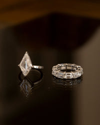 カイト ソリティア プロングとエメラルド ダイヤモンド エタニティ バンドを組み合わせた
