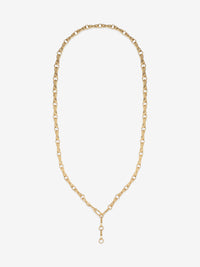 Adjustable. Can be worn as a lariat by clipping through any link, or as a normal chain when clipped to the last link. Our Charms and Coins are designed to clip through the links of this chain, so that charms remain stationary and can be spread out.