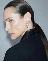 Inspired by Moroccan tiling. 18k Gold, Approximately 1.90ct diamonds per stud & 3.80tcw for the pair. Features a post to be worn like a standard earring, and a cuff so the piece moves up the ear.