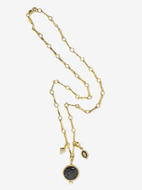 この商品にはチャームクラスプが付いています。クラスプが開閉し、どのチェーンでも取り外したり取り付けたりできることを意味します。