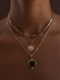 18K イエロー ゴールド、スモール ブラック イタリアン ガラス コイン、0.07ct ホワイト バゲット ダイヤモンド