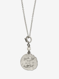 このコインにはチャームクラスプが付いています。クラスプが開閉し、どのチェーンでも取り外したり取り付けたりできることを意味します。