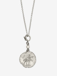 このコインにはチャームクラスプが付いています。クラスプが開閉し、どのチェーンでも取り外したり取り付けたりできることを意味します。