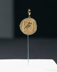 Inspired by Grecian themes, this coin features an owl, the symbol of Athena, goddess of wisdom. Owl of Athena signifies higher wisdom.