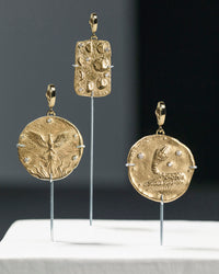 27mm coin; Made of 18K Yellow Gold, .06ct White Diamonds