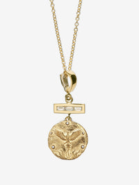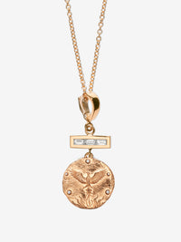 17mm coin; Made of 18K Yellow Gold, .04ct White Diamonds