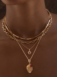豪華な 18K イエロー ゴールドの折衷的なペンダント。堂々とした色の貴重な宝石が散りばめられています。鮮やかなゴールドとのコントラストが遊び心たっぷりでエレガント。古代の遺物や貴重な遺物を彷彿とさせる現代の宝物。