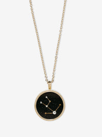 チャームはアベンチュリン ガラスで手作りされています。アベンチュリン ガラスは、18K イエロー ゴールドとクリスタルのインクルージョンを備えた半透明のガラスで、星空を象徴しており、きらめく背景に各星座がダイヤモンドで輪郭を描かれています。裏側には各星座の名前が上品に刻印されています。