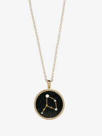 チャームはアベンチュリン ガラスで手作りされています。アベンチュリン ガラスは、18K イエロー ゴールドとクリスタルのインクルージョンを備えた半透明のガラスで、星空を象徴しており、きらめく背景に各星座がダイヤモンドで輪郭を描かれています。裏側には各星座の名前が上品に刻印されています。