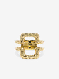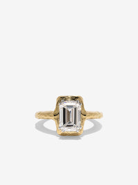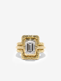 18k Yellow Gold & Emerald-Cut Diamond. Pictured with a 3ct Diamond. Ring is two pieces, outer jacket can be removed and worn separately, and inside ring can be worn separately.