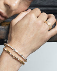 18k Yellow Gold, White Pave Diamonds 1/2 of the way around the band.